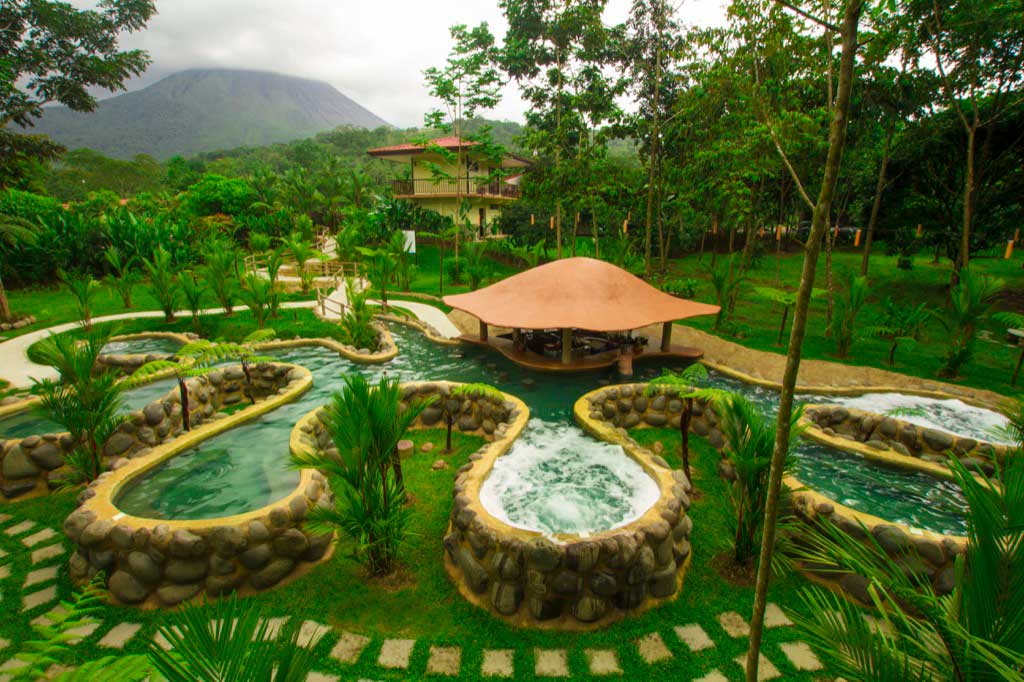 The Volcano Lodge, Hotel & Thermal Experience is a 4 star hotel located in La Fortuna, Costa Rica, at the foot of the Arenal Volcano. It offers rooms with private terraces, natural hot spring pools, restaurants serving local and international cuisine, spa and access to ecotourism activities, providing a unique experience of relaxation and adventure in a tropical environment.